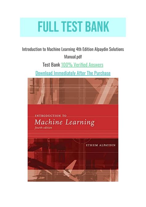 Read Online solution manual alpaydin introduction to machine learning Ebook Doc online is a convenient and frugal way to read solution manual alpaydin introduction to machine learning Ebook you love right from the comfort of your own home. Yes, there sites where you can get Doc "for free" but the ones listed below are clean from viruses and completely legal to use.