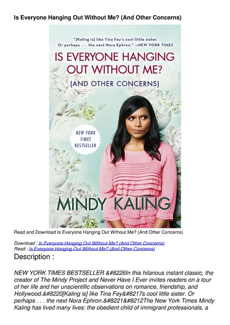 Read Is.Everyone.Hanging.Out.Without.Me.And.Other.Concerns Epub online is a convenient and frugal way to read Is.Everyone.Hanging.Out.Without.Me.And.Other.Concerns you love right from the comfort of your own home. Yes, there sites where you can get Epub "for free" but the ones listed below are clean from viruses and completely legal to use.