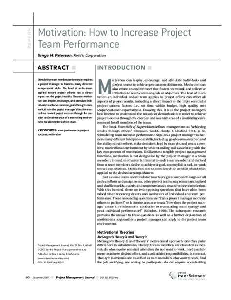 Download Motivation : How To Increase Project Team Performance PDF Doc